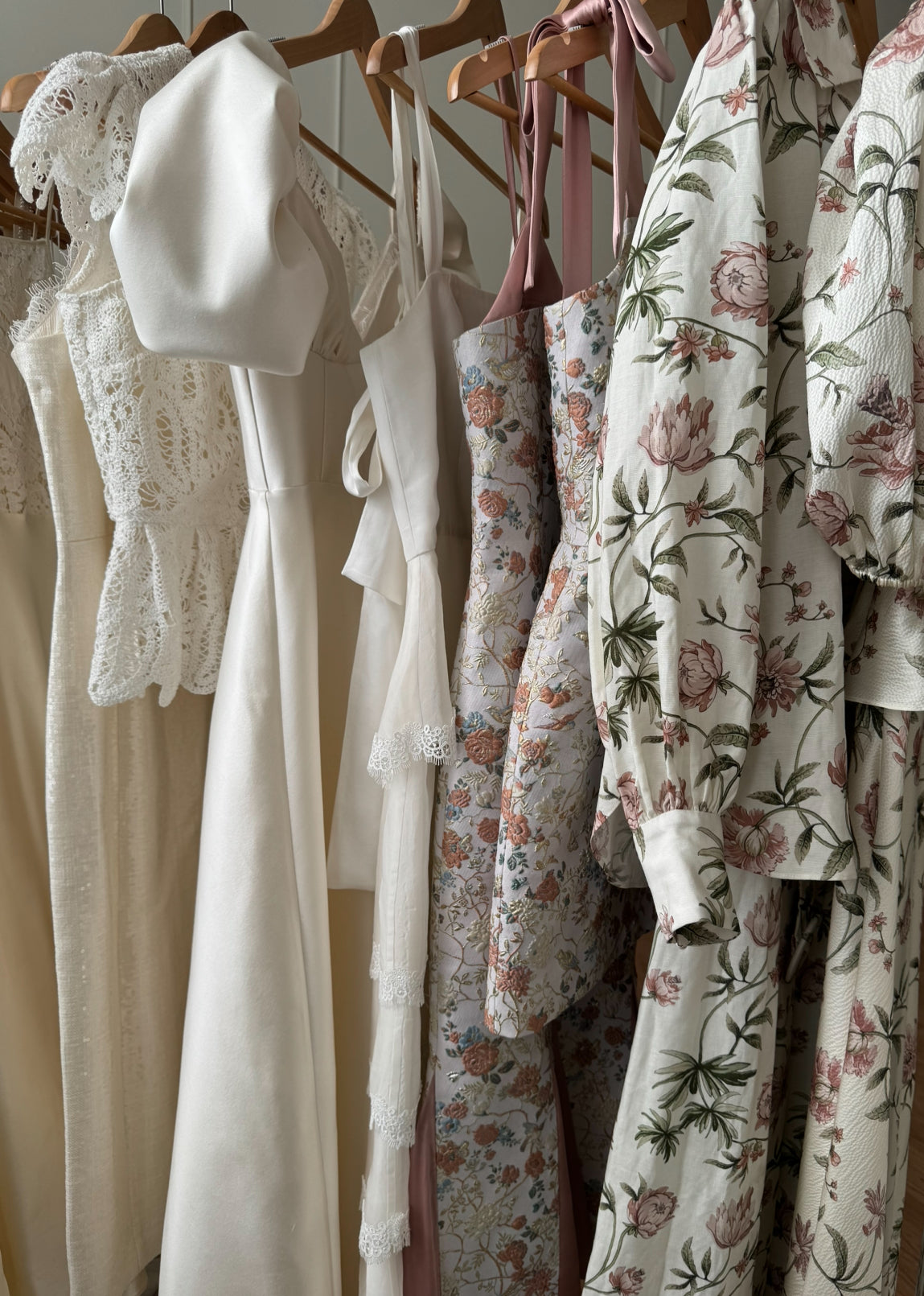 We have found an abundance of inspiration in trims, lace, intricate beading, bows, and ruffles. These elements encapsulate the essence of elegance and femininity, and we incorporate them into our designs to add exquisite and enchanting details. Drawing from the past, we reimagine these timeless embellishments to create pieces that are both nostalgic and contemporary.