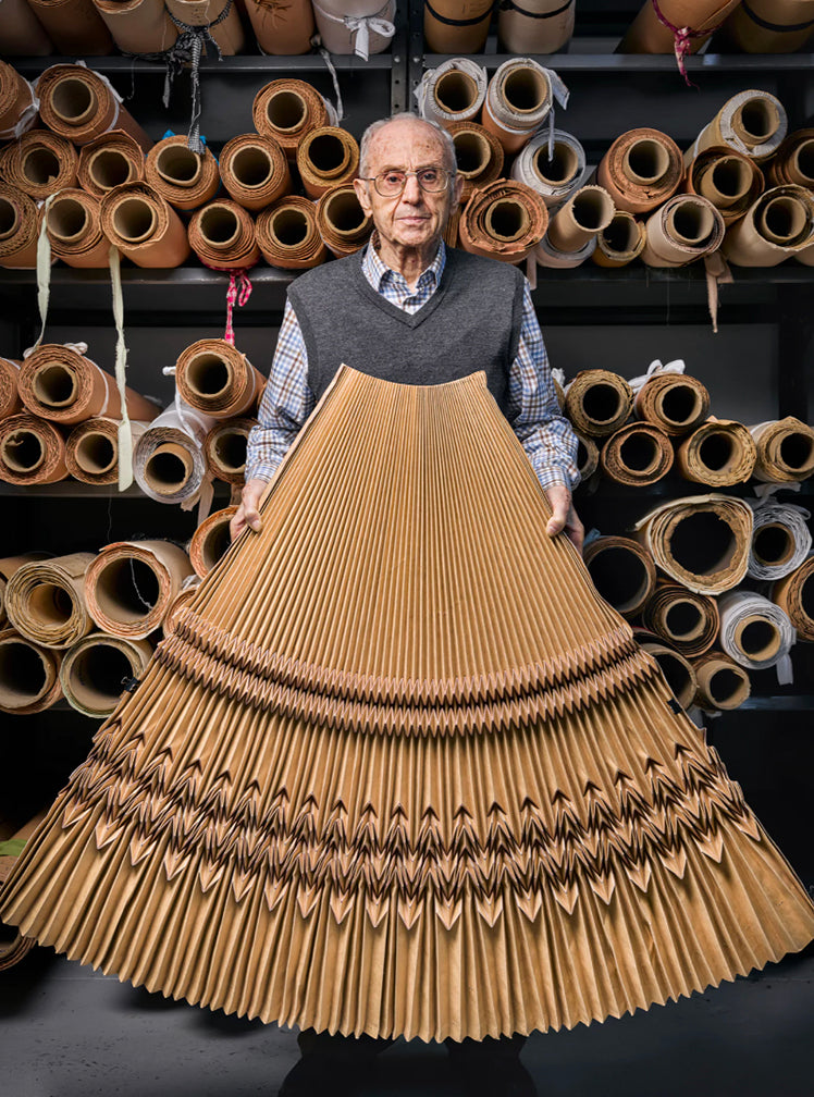 Our pleating is entrusted to a distinguished family-owned company, established in 1931, whose mastery spans five generations. This unparalleled legacy of artistry and technical precision is woven into each piece, reflecting a heritage of excellence that elevates every detail.